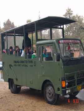 Land of roar means Jim Corbett, Corbett uses a sixteen seater bus for a day visit in the DHIKALA region,.